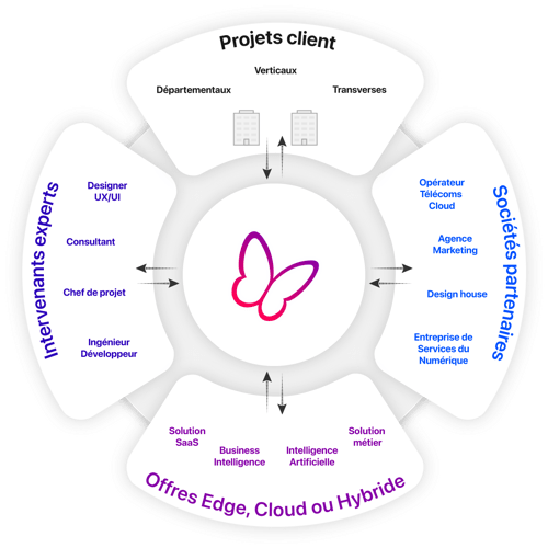 Réussissez votre projet digital avec un panel unique de services, de talents et d’expertises réunis en un écosystème. Nos intervenants vous accompagnent sur vos projets web, d’intelligence artificielle, de marketing digital, vos solutions cloud et télécoms.